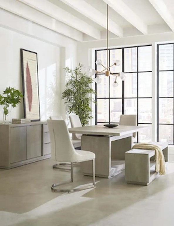 Sleekly tailored. With bold proportions, crisp, modern lines and a weathered finish, the Oxford dining bench makes a striking first impression. Mounted on a floating plinth base. Available in Mineral and Basalt Grey. Solid Acacia with Acacia veneer. Mitered top and side panels. Wire brushing enhances natural grain patterns.