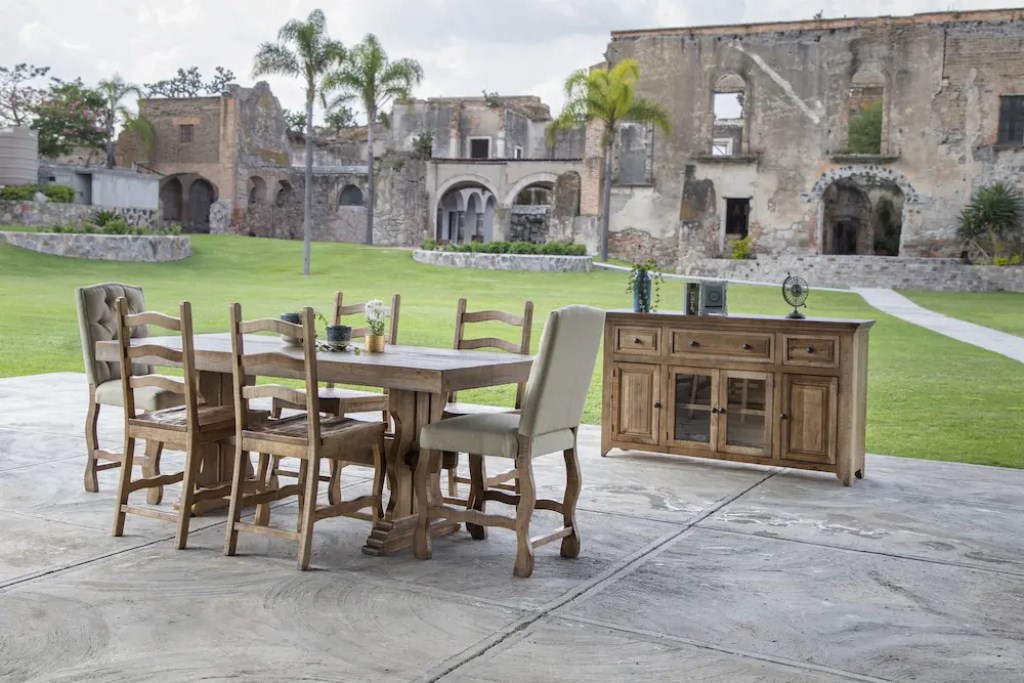 Featuring solid pine, this stunning dining set will surely impress your guests.
