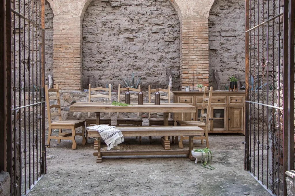 Mortise and tenon construction ensure stability and durability on all pieces.