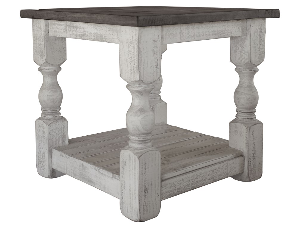 100% solid pine, great durability, and value Two-tone, multi-step lacquer finish. Tops feature weathered gray finish on hand- distressed wood and an Ivory antiqued finish on the rest of the case pieces Mortise and tenon construction ensures stability and durability on all pieces Solid wood tops are floated to allow for wood’s natural movement Hand-turned legs throughout the collection offers a high-end look Bottom shelf provides ample room for extra storage Wooden basket/crate is available featuring our exclusive Stone Gray finish and 1/2″ solid wood construction for lifetime durability. Use on the bottom shelf of these occasional table group interest