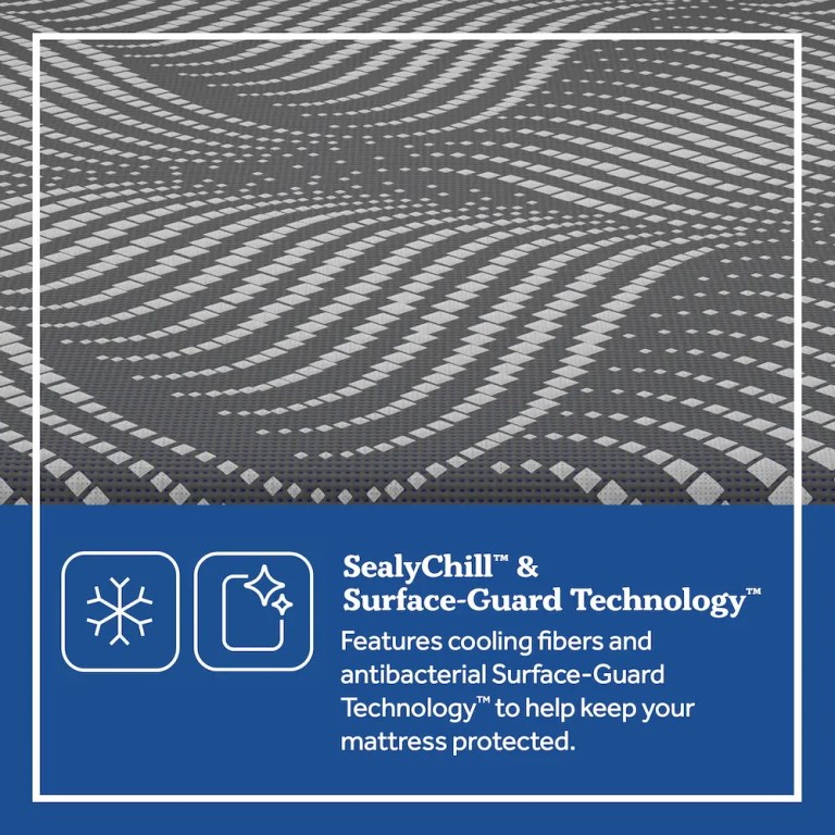 Our SealyChill cooling cover features spun, cool-to-the-touch fibers for refreshing comfort from the moment you lie down.