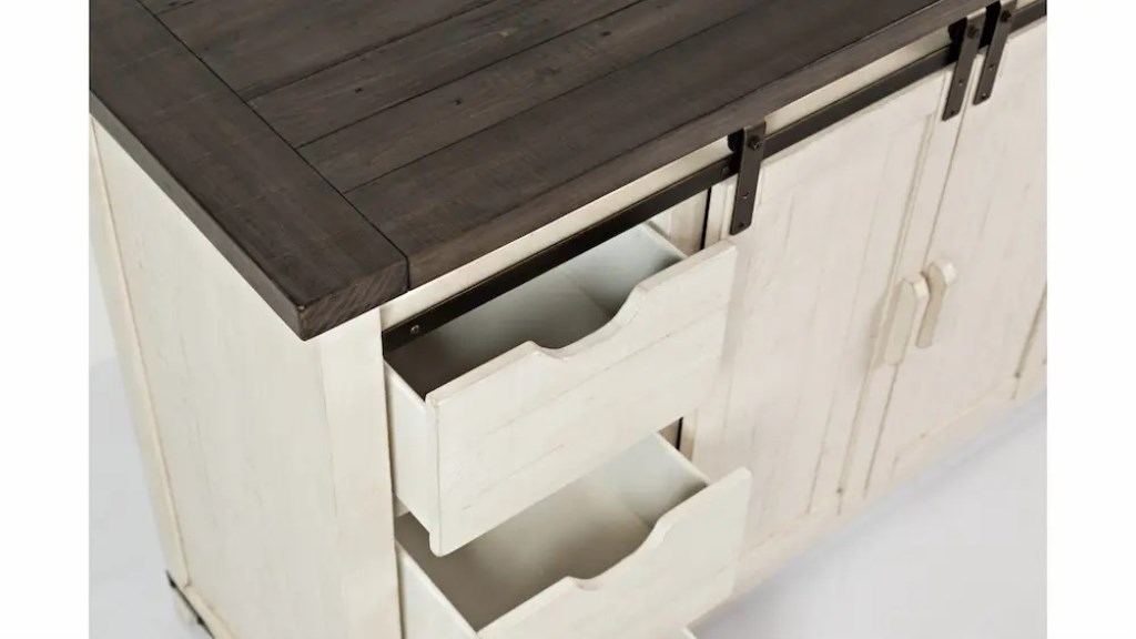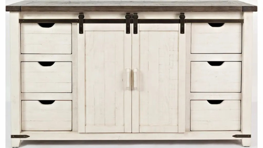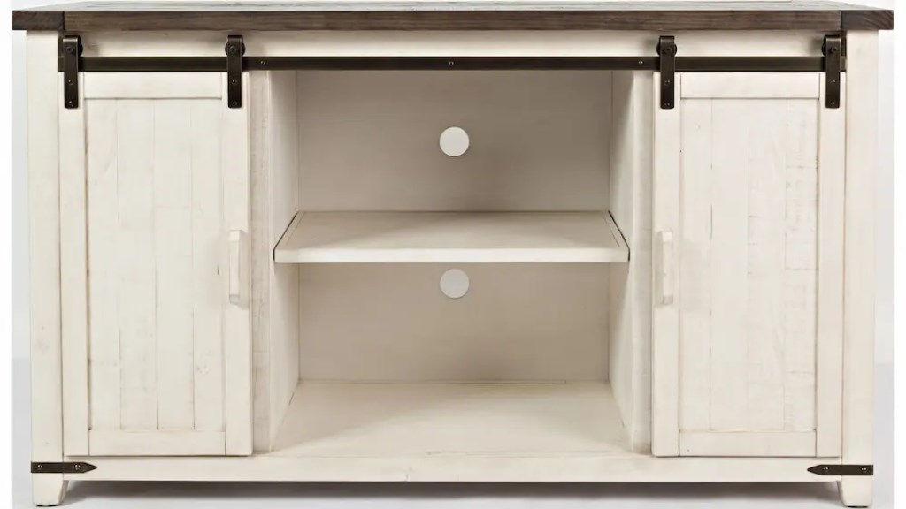 Expertly crafted using reclaimed pine and gliding barn door accents, this media and accent collection provides relaxed sophistication for your living space. With the choice of three different finishes ?C Barnwood, Vintage Black, and Vintage White ?C this group blends rustic and natural style to bring a unique and exceptional feel to your home.Drawer Dimensions: 10.75″W x 13.5″D x 5.25″H. Middle Shelf Dimensions: 25″W x 14.5″D. Adjustable Shelf behind sliding barn doors. Wire Management