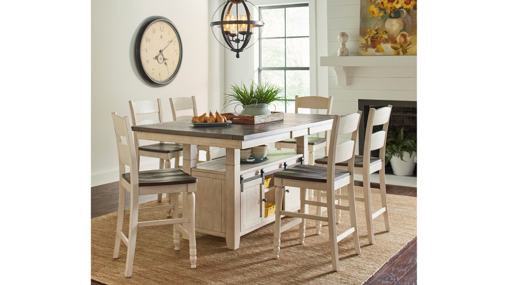 Expertly crafted using solid reclaimed pine, this dining collection provides relaxed sophistication for creative and comfortable entertaining. With options for any size dining space and the choice of three different finishes ?C Barnwood, Vintage Black, and Vintage White ?C this group blends rustic and natural style to bring a unique and exceptional feel to your home. Tasteful distressing should be expected and enjoyed. Stationary Seat