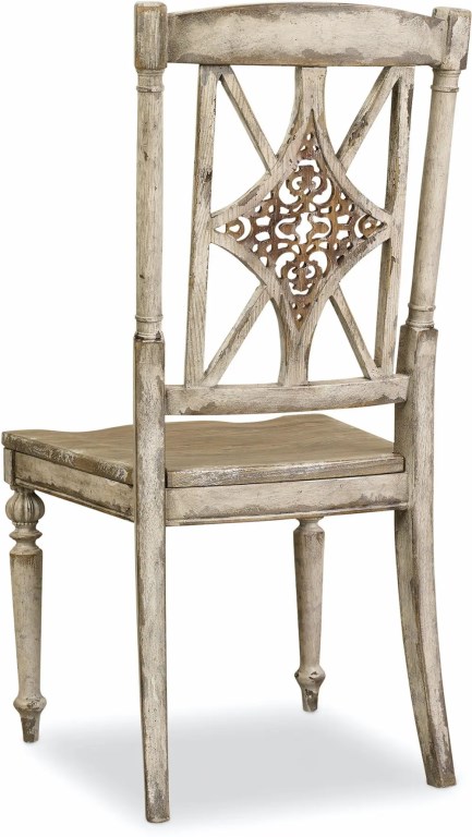 Exquisite design details and refined scale come together in the Chatelet Fretback Side Chair to help you create a luxurious but laid-back dining experience. From the diamond-shaped fretwork on the back to the slender shaped legs to the soft amber finish accented by vintage white, this side chair is timeless and unique. Come home to your little castle. Relax in a livable luxury with Chatelet, a whole home collection inspired by timeless farm style antiques found in ”little castles” of Old World Europe.