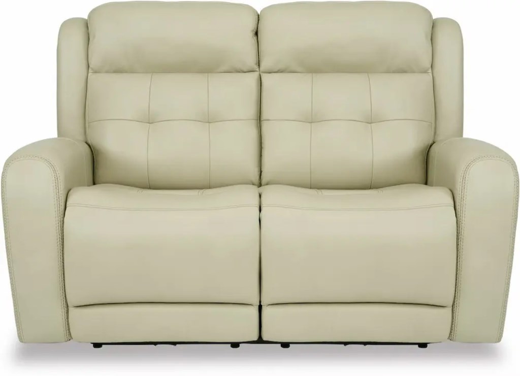 - Power controls on each side of the loveseat independently adjusts the headrest and recline for a personalized sit