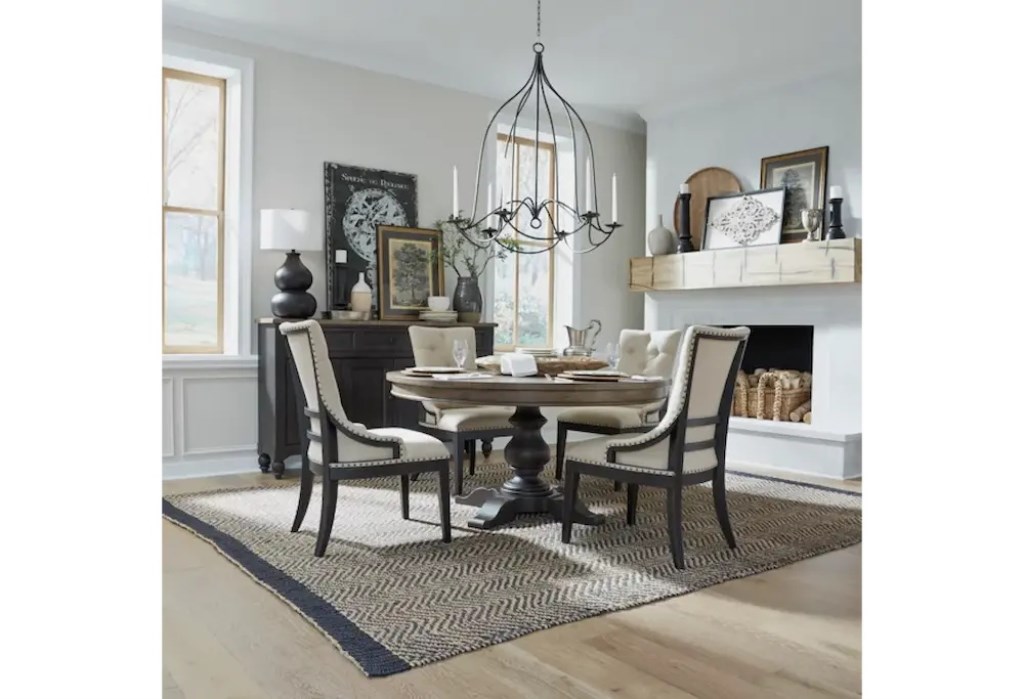 Reinvent your style and comfort with the Kaine shelter side chair in brown, prefect for any room in the house. Features exposed frame to giving you that deconstructed element, tufted back in a truffle linen fabric, nail head accents, web seating and taper
