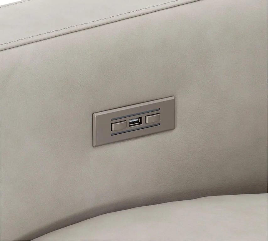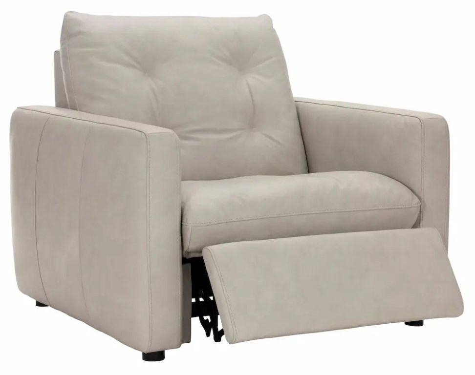 Technology and modern style come together beautifully on the Kaya power motion chair from Bernhardt. Seated on engineered hardwood this chair has a tight seat, USB ports, power footrests, and more all upholstered in beautiful leather. Refined and stylish this chair will fit seamlessly into a casual or sophisticated setting.