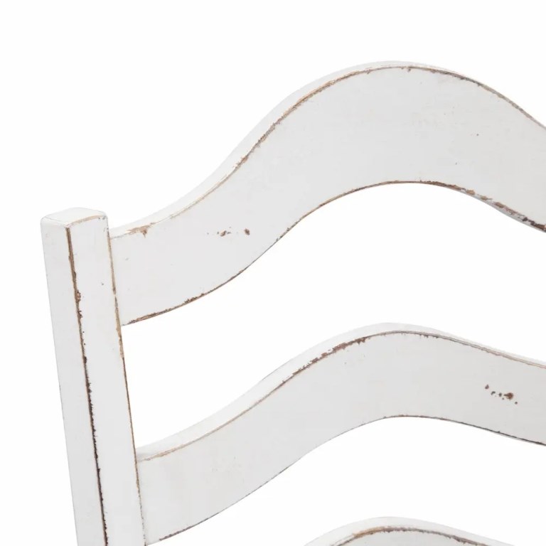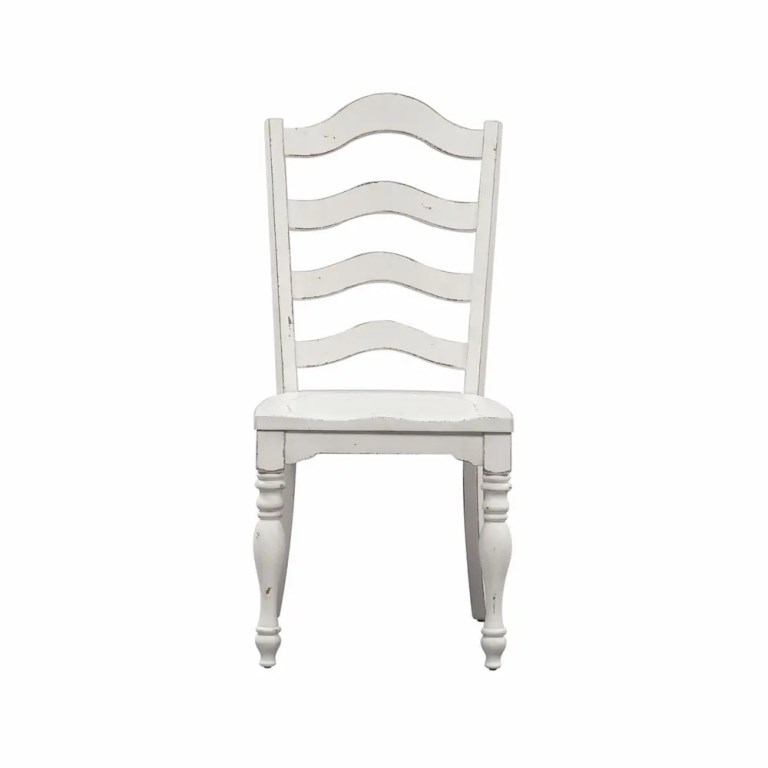 Sit in comfort with the Kirwin ladder back side chair. Crafted of rubberwood solids, this piece features the perfect blend of European design, nylon chair glides to protect your flooring, and an arched back and wooden saddle seat, anchored by beautifully turned legs. Warm antique finishes and artistic distressing along with grand scale create a piece to be passed to generations.