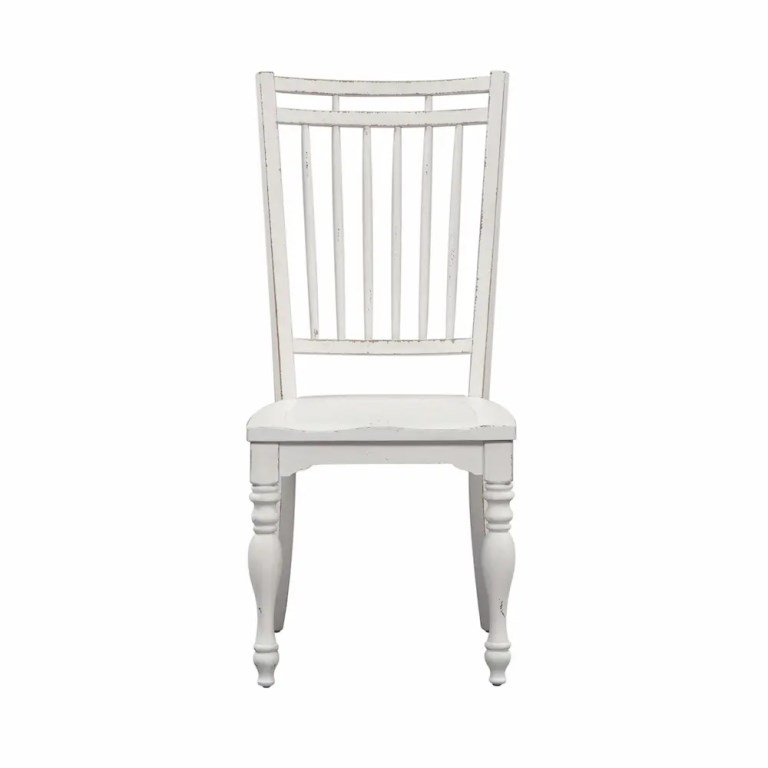 Sit in comfort with the Kirwin spindle back side chair. Crafted of rubberwood solids, this piece features the perfect blend of European design, a spindle back, nylon chair glides to protect your flooring, wooden saddle seat, and beautifully turned legs. Warm antique finishes and artistic distressing along with grand scale create a piece to be passed to generations.