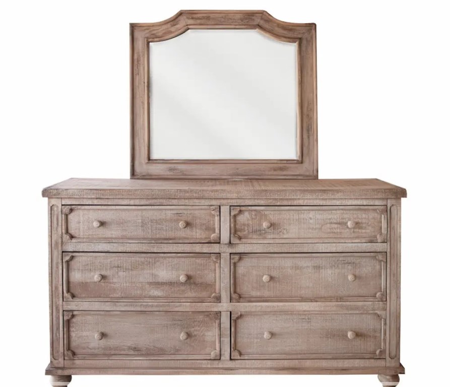100% solid mango wood on case goods provides durability and a rich wood grain. Inspired by the grandeur of the Old World with an eclectic feel. Our elegantly subtle Drift Sand finish enriches the natural mineral deposits on the mango wood grain, providing unique texture and depth.