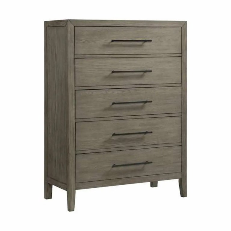 The Linz Contemporary 5-Drawer Chest is the epitome of modern elegance. It features an oak veneer in a grey finish with black metal drawer handles. You will have plenty of room to keep your things organized and out of sight. The top drawer is lined with grey felt to protect your precious belongings, while the dust-proofing bottom layer ensures everything stays clean and pristine. Upgrade your space with the Linz Contemporary chest and enjoy both style and functionality in one beautiful package.