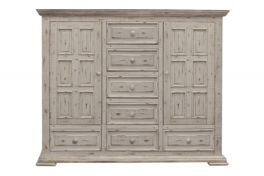 Multi-step lacquer finish with hand-rubbed highlights for a multidimensional cottage white finish.