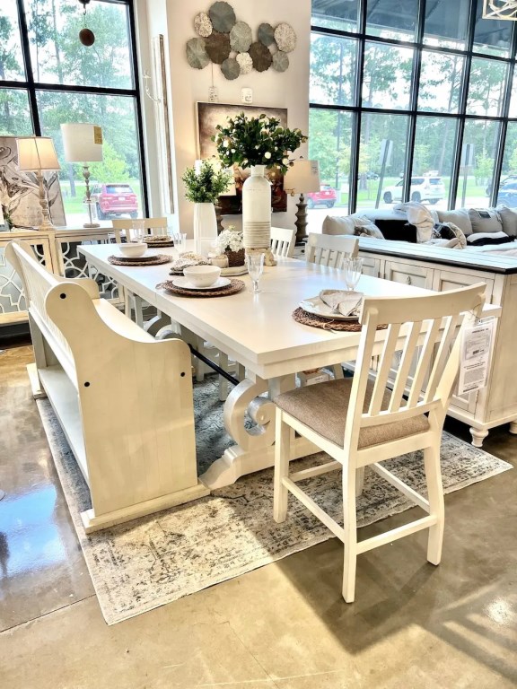 Bring refined style and warm design to your dining area with the Marley dining collection. Constructed of wood solids and veneers with a white finish, this set offers intricately carved legs, lath-back wooden chairs, or upholstered cream cushion seats. Personalize your dining room with the various chair or bench options. Whether you are serving a curated three-course meal or corralling for a casual brunch, this is the perfect dining table for your space.