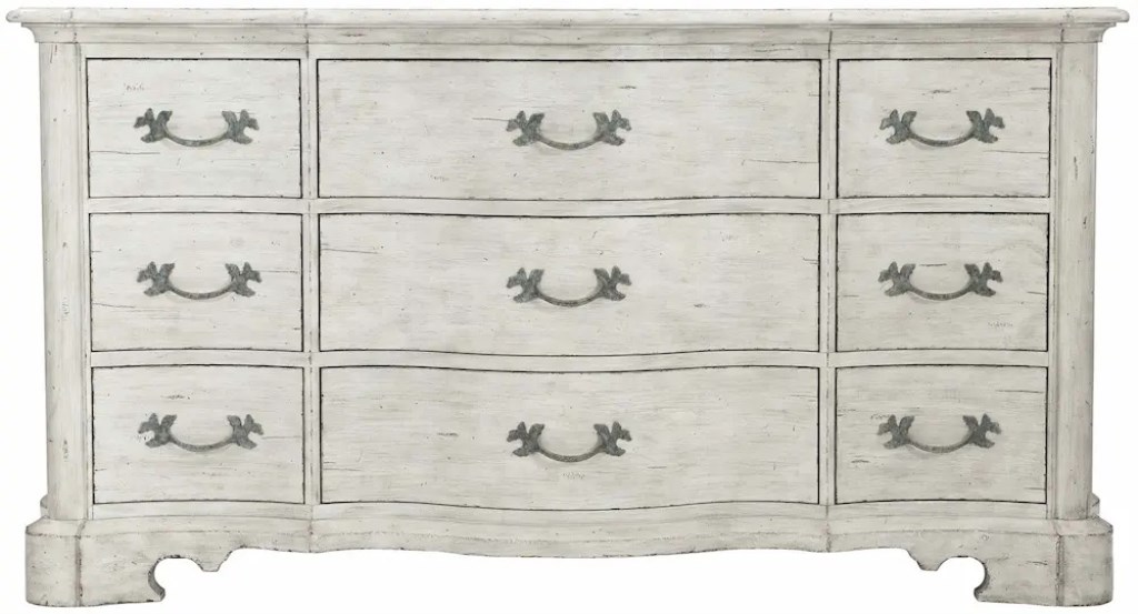 - Serpentine and scalloped shaped 9 drawer dresser