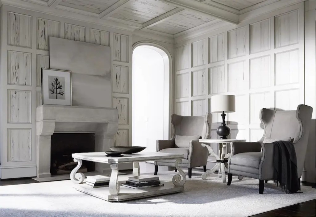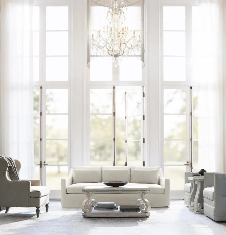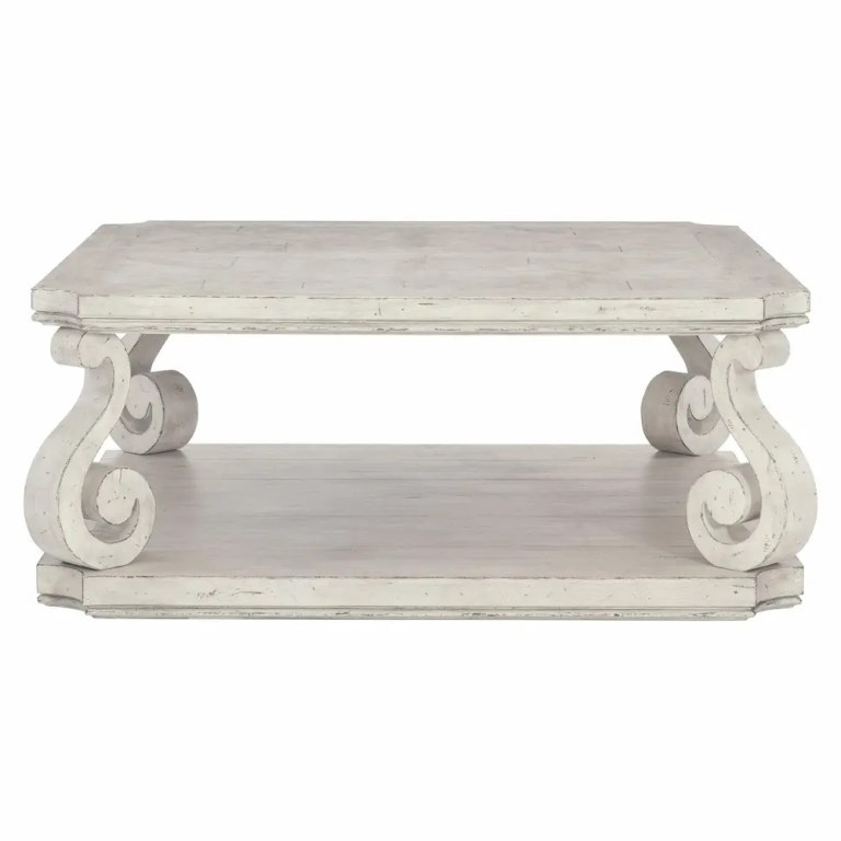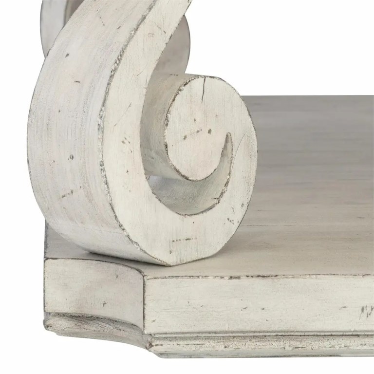 Inspired by 17th century French Provincial furnishings, the Mirabelle cocktail table balances a traditional form with casual style. A gently worn whitewashed Cotton finish softens the look, while scrolled legs convey timeless grandeur. The feel is sophisticated and refined, yet relaxed and inviting.