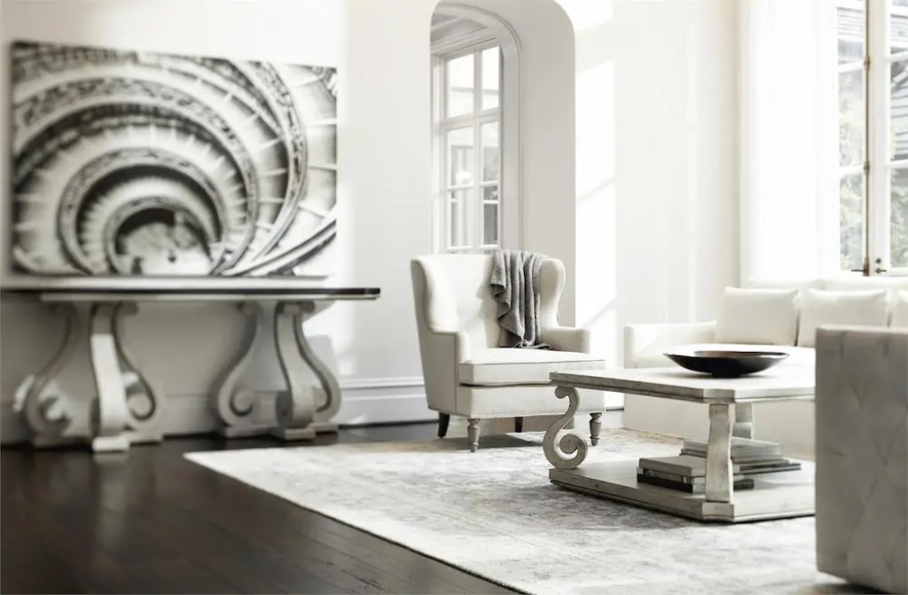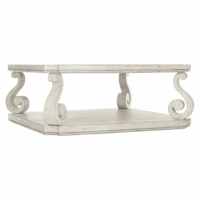 A gently worn Cotton finish softens the look of this elegant cocktail table inspired by French Provincial design.