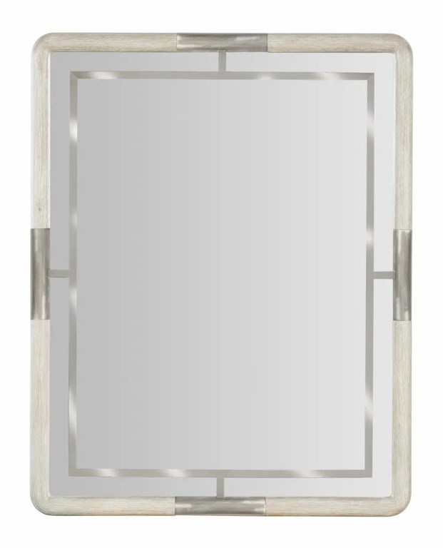In a timeless compass-like profile, the Modern Mood Landscape Mirror combines Quartered Oak Veneers in the Diamond finish with wire-brush detailing and warm pewter metal accents for a striking focal-point piece.