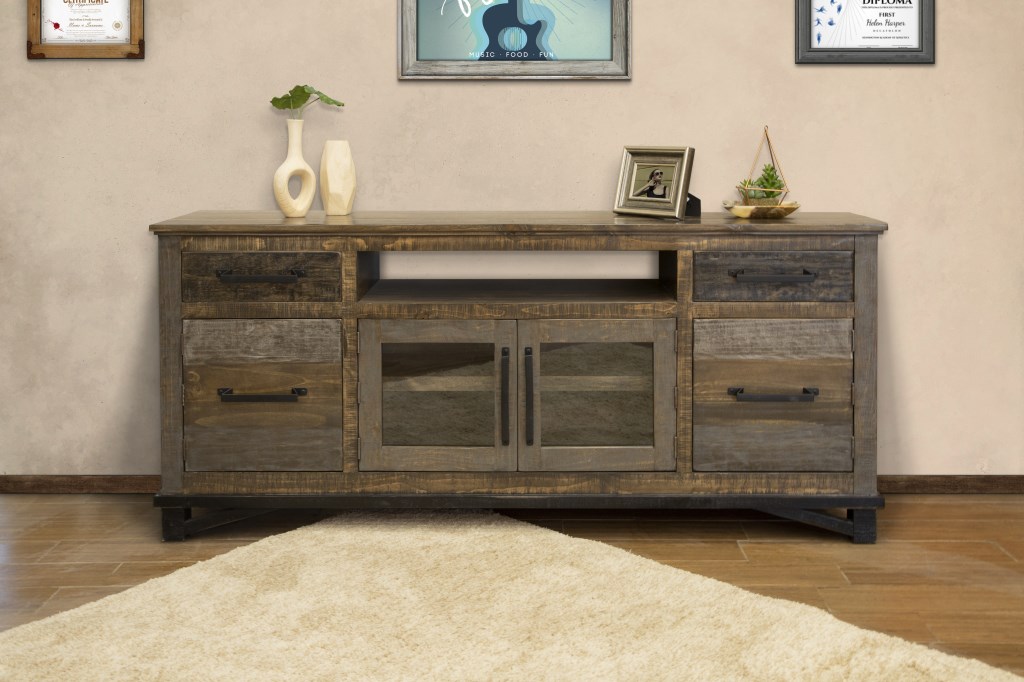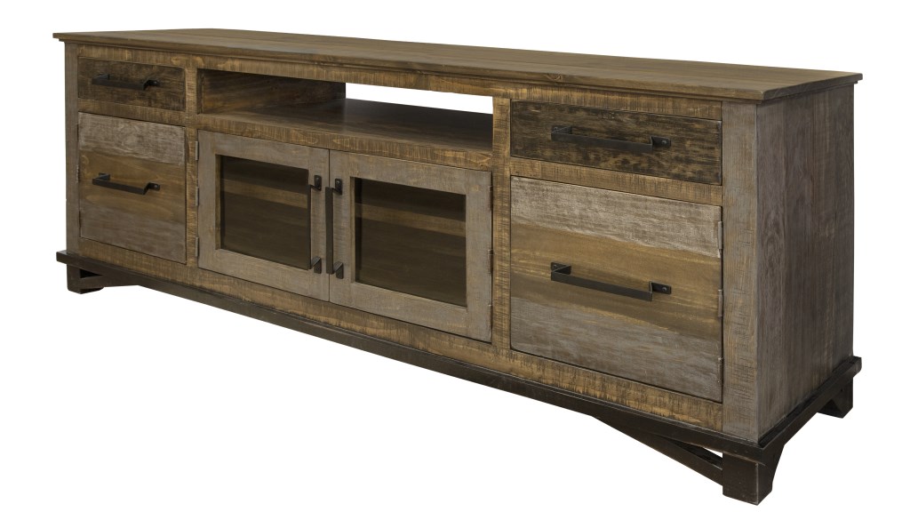 ?? Six-step, hand-painted finish in a gray and brown color scheme for a “reclaimed wood” look. Lacquer coating provided protection to wood and finish durability.