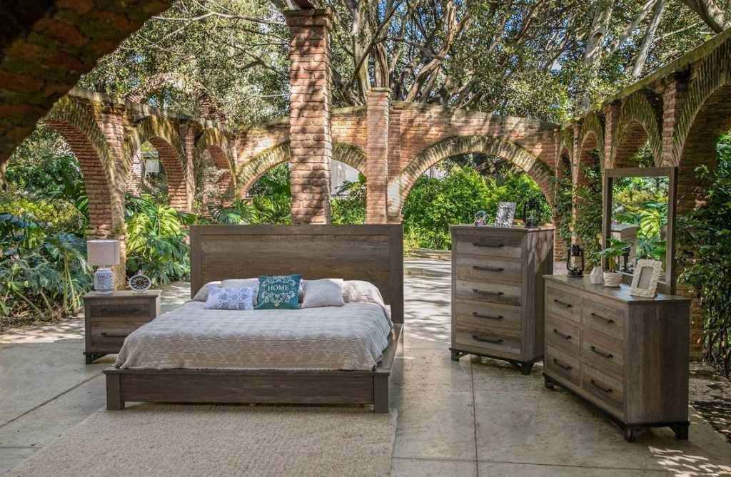• Transitional bases on case-goods constructed in 100% solid pine offers a mixed media look at a value
