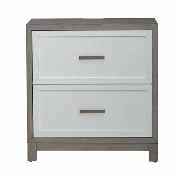 Home and perfection are achievable with the Palms two drawer nightstand. Crafted with excellence using rubberwood solids and split heart cathedral white oak veneers, this nightstand features a two-tone Driftwood and Shell White finish. Whether you want to escape to the good life, where every day is a vacation, or you want to bring a new level of casual sophistication to your home, Palms offers a way to express your personality without sacrificing style. The two-tone finish blends the best of casual contemporary and costal living where picture frame molding outlines wood framed drawer fronts. There are two full extension drawers offering plenty of storage that features a premium felt lined top drawer and cedar lined bottom drawer, all accented with Pewter Wash bar pull hardware. The block foot base adds a contemporary element to the clean lines of the nightstand. Place the nightstand next to your bed and utilize the convenience of the built-in charging station complete with two electrical outlets and two USB ports. The Palms two drawer nightstand offers a unique point of view that is sure to inspire.