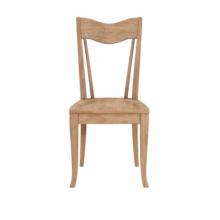 This side dining chair is inspired by traditional farmhouse seating, in a streamlined modern take on the classic slat back chair. Crafted from solid wood and warm-toned veneer in an almond tone.