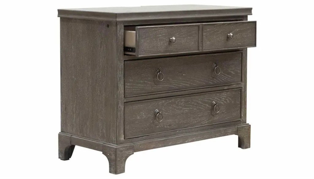 Step into a magical land where stunning beauty and intelligent design meets complete affordability. Our Patina collection is about transitioning dreams to reality. Each piece is a hand-finished burnished bark soft tone. Crafted from select White Oak veneers and Rubberwood solids. Open the drawers and you’ll find upgraded ball-bearing glides, each drawer is English dovetailed for added strength, and lined with Cedar. The perfection of quality and style. The collection includes a choice of Nightstands. The 38″ mirror nightstand or the larger 36″ wood nightstand, each features a built-in power pack for all your charging needs and personal night light. Choose one or the other or even one of each.