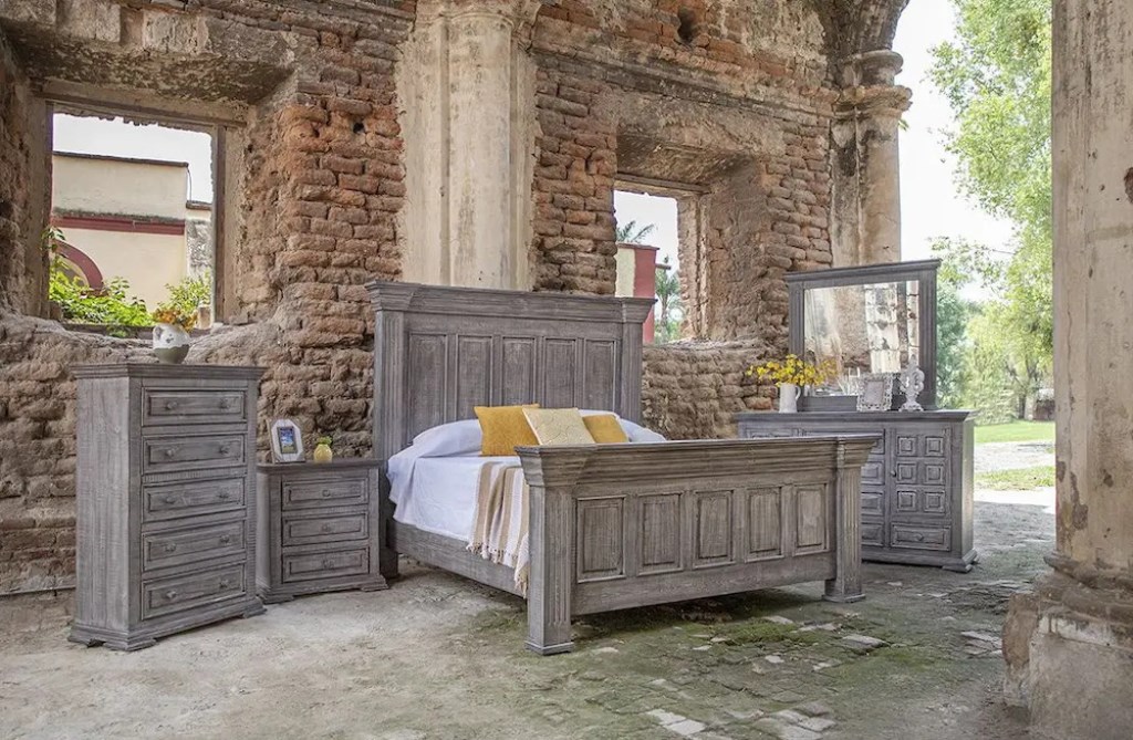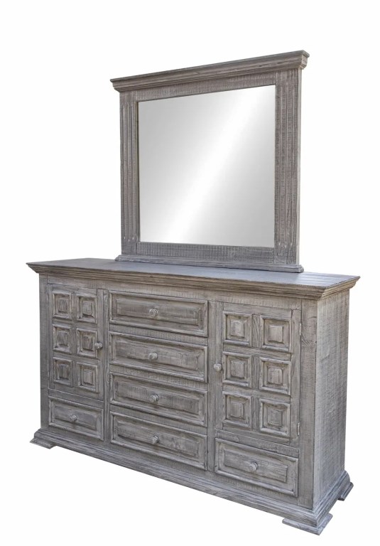 - Solid pine, Hand-rubbed, multi-step lacquer finish for a weathered gray finish.
