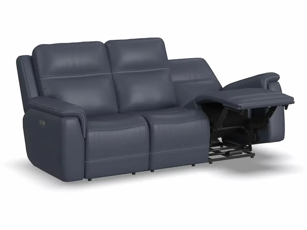 Make your living room the comfiest place in the house with the Sawyer Power Reclining Sofa with Power Headrests. With our Zero Gravity technology, everyone can enjoy a feeling of weightlessness as they relax. Those sitting on each end can put their feet up while watching TV using power controls that independently adjust the headrests, recline and lumbar. When you need to charge a device, simply plug it into one of two USB charging ports built into the power controls. Additional comfort enhancing features include a contoured seat with waterfall chaise for enhanced leg and lower back support and pad over arms that relieve tension in your forearms. Cross-stitching on the seat and back has an elevated look and enhances durability. Our patented Flexsteel DualFlex Spring System offers a mix of flexibility and firmness as you sit and ensures quality that will last for years to come. Choose from two leather match options to make Sawyer suit the style of you home.