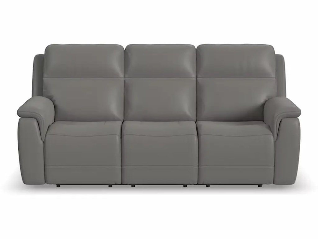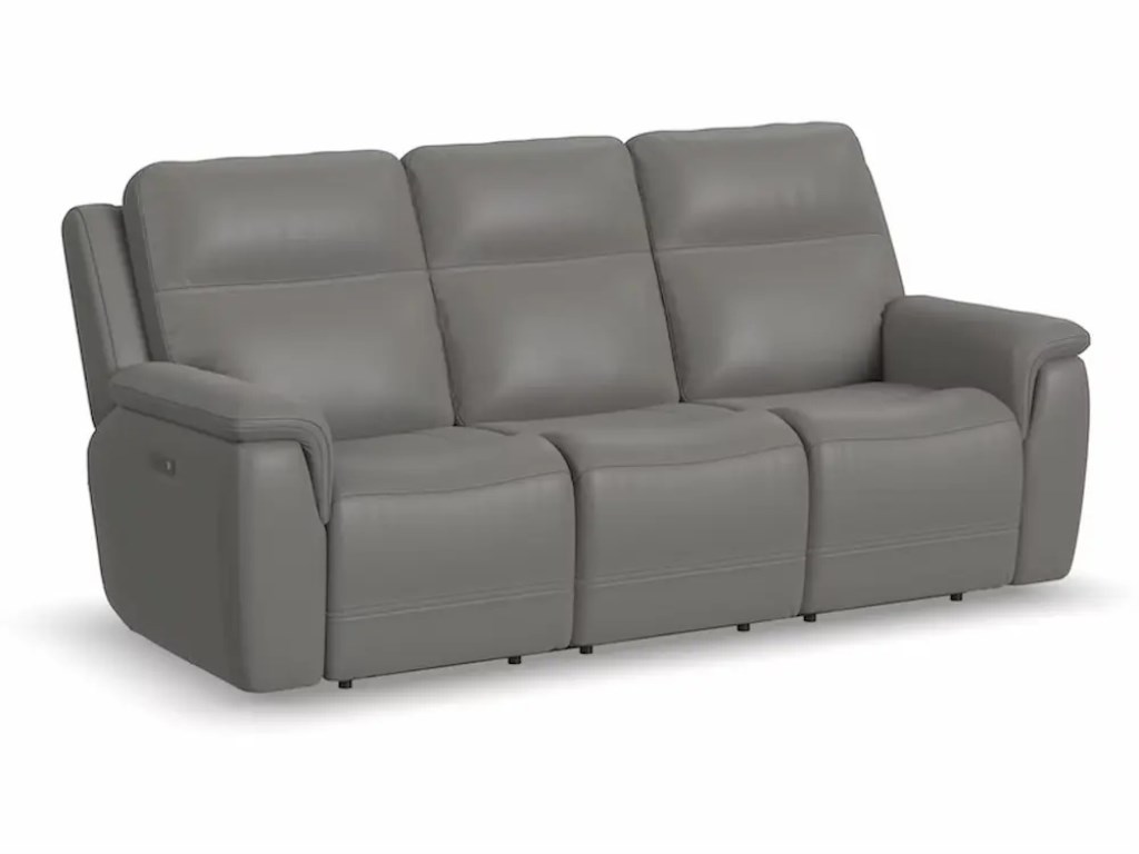 Make your living room the comfiest place in the house with the Sawyer Power Reclining Sofa with Power Headrests. With our Zero Gravity technology, everyone can enjoy a feeling of weightlessness as they relax. Those sitting on each end can put their feet up while watching TV using power controls that independently adjust the headrests, recline and lumbar. When you need to charge a device, simply plug it into one of two USB charging ports built into the power controls. Additional comfort enhancing features include a contoured seat with waterfall chaise for enhanced leg and lower back support and pad over arms that relieve tension in your forearms. Cross-stitching on the seat and back has an elevated look and enhances durability. Our patented Flexsteel DualFlex Spring System offers a mix of flexibility and firmness as you sit and ensures quality that will last for years to come. Choose from two leather match options to make Sawyer suit the style of you home.