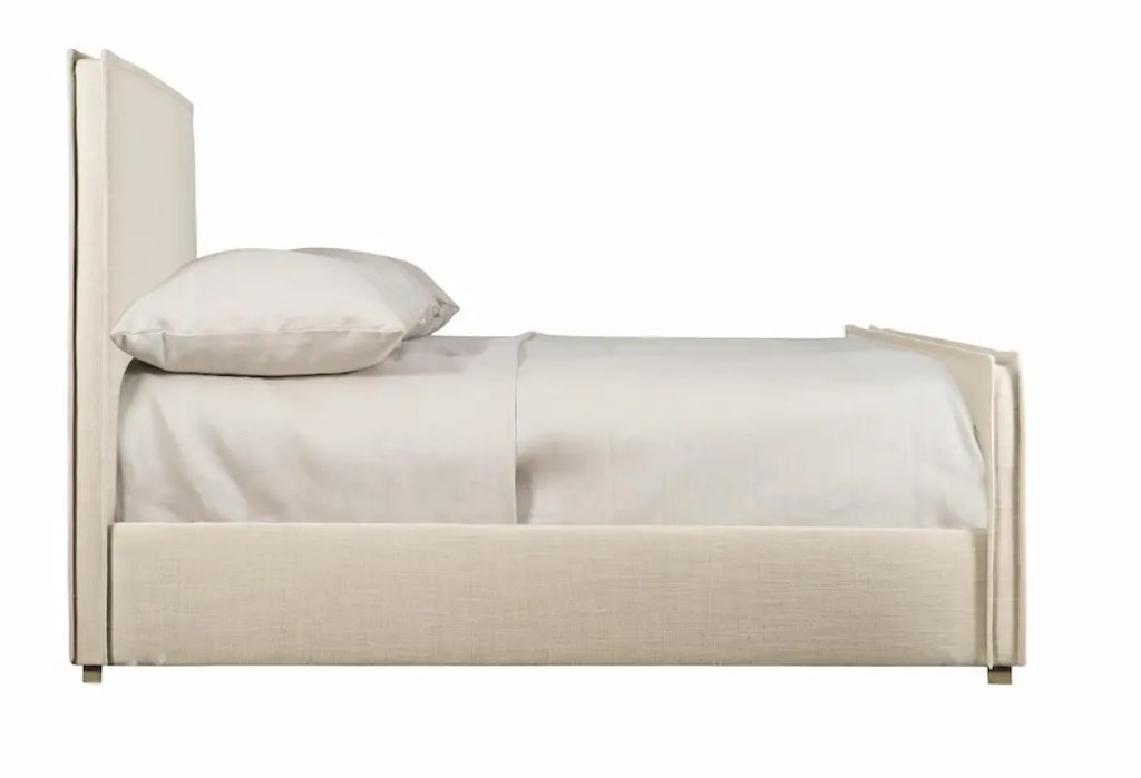 With clean lines and minimal ornamentation, the Sawyer bed offers sophisticated style with a laid-back cool. The fully upholstered bed is covered in muslin and wrapped in textural fabric with a soft neutral shade for a soothing, organic look. Stitched flanged edges and wood feet in a Morel finish add subtle nuances to this stylish but understated piece.
