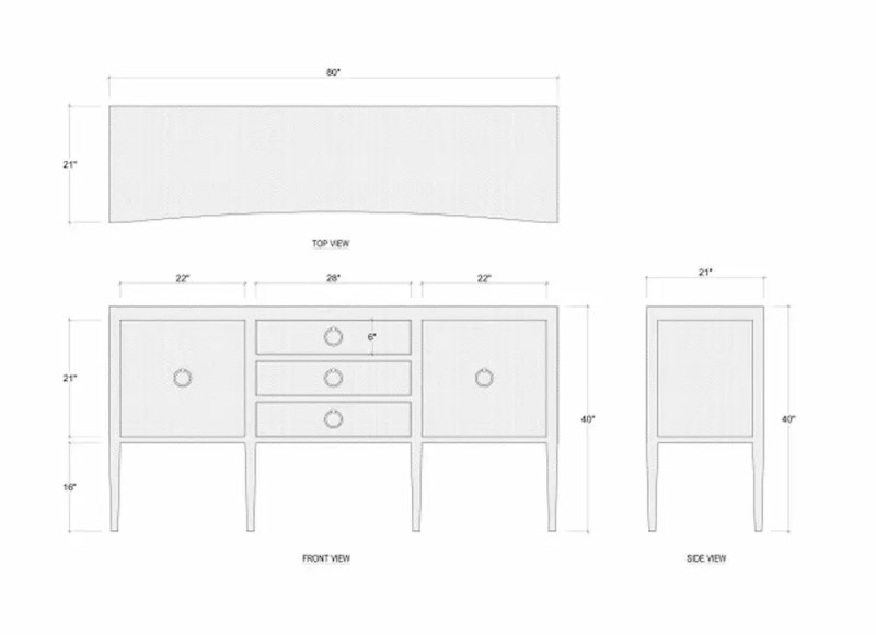 This gray linen wrapped cabinet features a beautiful concave front and plenty of storage. It is suitable to be used as a sideboard in your dining area or as a console in your entryway or living room. All finishes are applied by hand so that slight variances are to be expected and only add to the unique character of each piece.