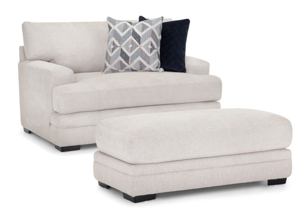 The Zackary Chair and a Half collection is a transitional collection upholstered in the color “shell”, a light beige polyester fabric. This collection features rolled arms and accent pillows in shades of gray. Meticulously crafted, the Zackary provides unsurpassed comfort without sacrificing style.